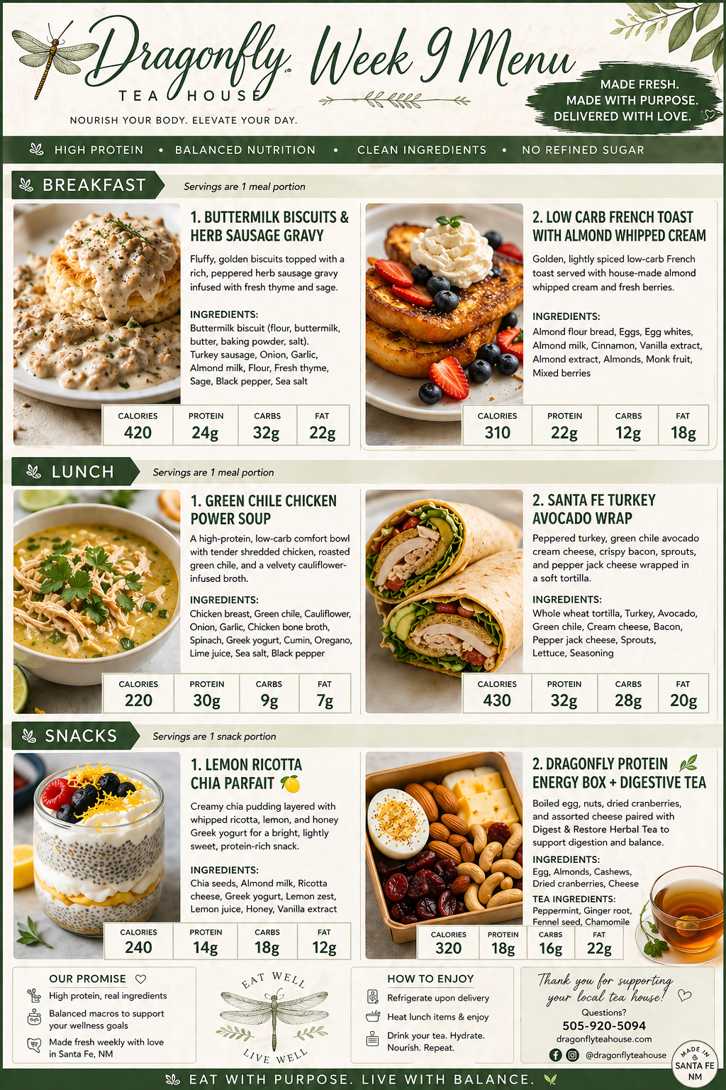 At this time, we offer curated weekly menus to preserve efficiency and small-batch quality. While ingredient lists are clearly provided each week, we are not able to guarantee allergen-free preparation as we use a shared Commercial Kitchen.